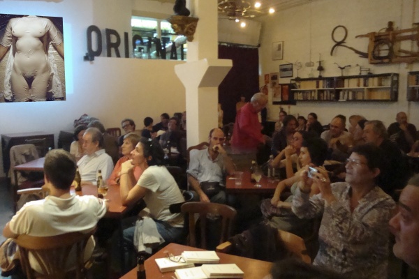 Le public devant les projections de la partie du livre consacré à Voilé Dévoilé.